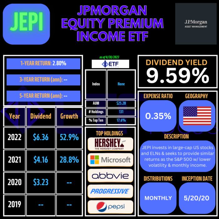 Introducing JEPI (JPMorgan Equity Premium Income ETF) as a dividend stock, we will analyze its historical performance in terms of dividends and total returns and compare it with other dividend stocks in the same sector or industry.