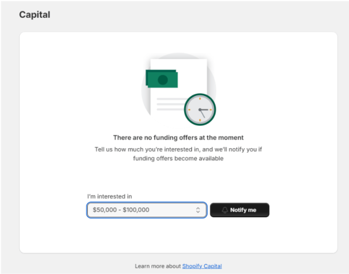 • Wait for the loan approval decision from Shopify Capital.